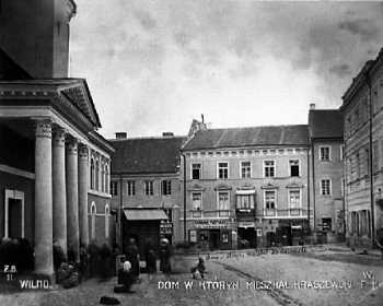 Pilies g. 1951 - 1988 buvo M.Gorkio g. Centre - namas Didžioji g. 24. XVIII a. pab. - rekonstruotas, pristatytas III aukštas, įgijo klasicicmo bruožų. XX a. pr. užstatytas IV aukštas, įrengtas viešbutis. 1967 m. namas rekonstruotas ir iš dalies rstauruotas (arch. E.Urbonienė). Šiame name 1830-35 gyveno J.I.Kraševskis. Dešinėje matosi Radvilų rūmai "Kardinalija".