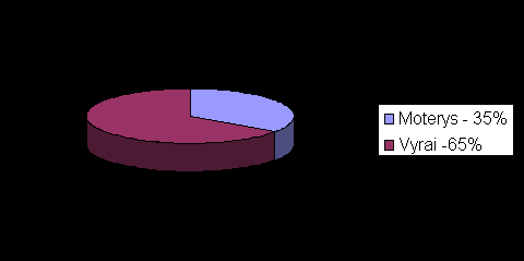 Direktorius paaiškino vienodų draudimo įmokų tarifų įvedimo pasekmes: Tarkime, bus nustatyti vienodi gyvybės draudimo įmokų tarifai moterims ir vyrams. Tuomet tai bus tikra moterų teisių diskriminacija (pažeidžiama moterų teisė į teisingas draudimo įmokas), nes moterys subsidijuos vyrus. Skundo tyrimo metu nustatyta, kad draudimo įmokos dydis priklauso ne tik nuo asmens lyties, bet ir nuo amžiaus, užimtumo, laisvalaikio pomėgių, sveikatos stovio ir daugelio kitų faktorių, kurių nenurodė draudimo įmonės savo paaiškinamuosiuose raštuose. Žinoma, lytis ir amžius patys prieinamiausi faktoriai, nereikalaujantys didelių sąnaudų, nustatant gyvybės draudimo įmokas. Ištyrus skundą, buvo padaryta išvada, kad Paskolų gavėjų gyvybės draudimo taisyklių įmokų dydžių nustatymo principai nevisiškai atitinka Moterų ir vyrų lygių galimybių įstatymo reikalavimų. Buvo atkreiptas Valstybinės draudimo priežiūros tarnybos prie Finansų ministerijos direktoriaus E.Vasilio-Vasilausko dėmesys į tai, kad UAB VB Gyvybės draudimo Paskolų gavėjų gyvybės draudimo taisykles Nr.002 ir tarifai numato vyrams didesnius nei moterims įmokų dydžius, kurie pagrįsti objektyviu individo požymiu, tai yra jo lytimi, bei su individo lytimi susijusiu požymiu vidutine amžiaus trukme. Taip pat buvo atkreiptas dėmesys į Moterų ir vyrų lygių galimybių įstatymo 3 straipsnio 1 punkto nuostatą, įpareigojančią valdžios ir valdymo institucijas užtikrinti, kad visuose jų rengiamuose ir priimamuose teisės aktuose būtų įtvirtintos lygios moterų ir vyrų teisės. Buvo siūlyta Valstybinės draudimo priežiūros tarnybos prie Finansų ministerijos direktoriui E.Vasiliui-Vasilauskui ir UAB VB Gyvybės draudimas generalinei direktorei B.Kamuntavičienei apsvarstyti galimybę nustatyti gyvybės draudimo įmokų dydžius, atsižvelgiant į atitinkamas subjektyvias individą apibūdinančias savybes (charakterio ypatumai, laisvalaikio praleidimo būdai, pomėgiai) bei objektyvius faktorius, kaip pavyzdžiui, sveikatos būklė, profesinė veikla ir kt. VB Gyvybės draudimas generalinė direktorė B.Kamuntavičienė, pritarė kontrolierės išvadai dėl skirtingų draudimo įmokų tarifų nustatymo moterims ir vyrams formalaus prieštaravimo Moterų ir vyrų lygių galimybių įstatymui. Tačiau B.Kamuntavičienė teigia, kad gyvybės draudime rizikos dydį lemia statistiškai įvertintos vidutinės mirtingumo normos, kurios visame pasaulyje vyrams yra didesnės nei moterims. Generalinė direktorė atsakyme kontrolierei pažymėjo, kad atsisakyti skirtingų draudimo įmokų tarifų abiem lytims ir kaip alternatyvą taikyti tik priedus prie bazinio tarifo dėl apdraudžiamojo sveikatos būklės, darbo pobūdžio ar laisvalaikio pomėgių nėra problemos sprendimas ir nebūtų teisinga įteisinti kertiniams draudimo principams prieštaraujančią praktiką. * Kaip jau buvo minėta, nemažai gauta moterų skundų, kuriuose jos skundžiasi, kad yra diskriminuojamos darbo teisinių santykių srityje, įsidarbinant. Tačiau trejų metų Moterų ir vyrų lygių galimybių kontrolieriaus tarnybos veiklos praktika rodo, kad dauguma tokių skundų, tiek moterų, tiek vyrų, yra nepagrįsti. Visų pirma, reikėtų pažymėti, kad, tiriant tokio pobūdžio skundus, būna sunku įrodyti, jog darbdavio aprašyti veiksmai, neva pažeidžiantys moterų ar vyrų teises, yra padaromi būtent dėl darbuotojo lyties. Ypač sunku būna įrodyti, darbdavio vykdomą darbuotojo persekiojimą už skundo padavimą moterų ir vyrų lygių galimybių kontrolierei, t.y. įrodyti, kad darbuotojo darbo sąlygos pabloginamos, arba, kad jis atleidžiamas iš darbo dėl to, kad pateikė skundą. Be abejonės, tokių skundų tyrimas yra sudėtingesnis tais atvejais, kai pasiskundęs darbuotojas dirba privačioje struktūroje, kur darbdavys turi didesnę veiksmų laisvę konkrečiam darbuotojui nustatyti vienokį ar kitokį darbo užmokestį, perkelti darbuotoją į aukštesnes ar žemesnes pareigas, nes jo veiksmai šioje srityje nėra griežtai reglamentuoti įstatymuose. Valstybės tarnyboje situacija yra priešinga, kadangi čia valstybės tarnautojo statusas, jo darbo užmokestis, paaukštinimas pareigose ir kita yra labai griežtai reglamentuota teisės aktuose, todėl realiai yra mažesnė tikimybė pažeisti Moterų ir vyrų lygių galimybių įstatymą. * * * Toliau pateikiamos kelių skundų, susijusių su įsidarbinimo problemomis, tyrimų santraukos. Moterų ir vyrų lygių galimybių kontrolieriaus tarnyba gavo moters pareiškimą dėl jai sudarytų mažiau palankių įdarbinimo sąlygų AB Šiaulių banko lizingas. Pareiškėja sužinojusi, kad šiai bendrovei reikalingas faktoringo vadybininkas, paskambino dėl įsidarbinimo, tačiau jai buvo pasakyta, kad reikalingas vyras, o ne moteris. Neatsižvelgdama į šį banko darbuotojos atsakymą, pareiškėja nusiuntė gyvenimo aprašymą. Pareiškėjos teigimu, banko darbuotoja, sužinojusi, kad pretendentė ruošias i ištekėti, pasakiusi, jog šeimyninė padėtis jai neleis dirbti šio darbo. Pareiškėjos pokalbį telefonu su darbuotoja girdėjo ir pareiškėjos vyras, kurio rašytinis pareiškimas taip pat yra gautas.Pareiškėjos vyras patvirtino, kad jo žmona paskambino skelbime nurodytu telefonu, tačiau jai esą buvo atsakyta, kad reikalingas vyras, o kito pokalbio telefonu metu buvo atsisakyta ją įdarbinti todėl, kad jo žmona ištekanti. Pareiškėjos vyras tvirtina girdėjęs šiuos žodžius, nes pokalbio metu buvęs šalia žmonos. Skundo tyrimo metu buvo kreiptasi į UAB Šiaulių banko lizingas vadovą ir paprašyta pateikti paaiškinimą dėl skundžiamų aplinkybių. UAB Šiaulių banko lizingas direktorė informavo, kad bendrovė plečia savo veiklą ir todėl paskelbė konkursą faktoringo vadybininko pareigoms užimti. Direktorė paaiškino, skelbime nurodytas pareigas užimti pretendavo daugiau kaip 20 kandidat