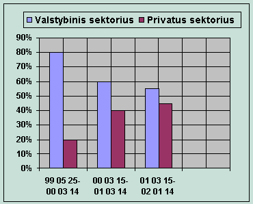 Kaip žinome, Lietuvos Respublikos moterų ir vyrų lygių galimybių įstatymo nuostatos vienodai privalomos tiek valdžios ir valdymo institucijoms, tiek valstybės, tiek privačioms įmonėms. Per šį atsiskaitomąjį laikotarpį, palyginus su praėjusiais, padidėjo atliktų tyrimų dėl galimų moterų ir vyrų lygių galimybių pažeidimų privačiame sektoriuje skaičius (9 pav.). Tačiau, remiantis tokiais statistikos duomenims, dar negalima daryti išvados, kad sumažėjo Moterų ir vyrų lygių galimybių įstatymo pažeidimų valstybės tarnyboje, valstybės įmonėse. Padidėjęs atliktų tyrimų skaičius dėl moterų ir vyrų lygių galimybių pažeidimų privačiame sektoriuje greičiau liudija apie tai, kad šio sektoriaus darbuotojai įgijo daugiau drąsos ir pasiryžimo kovoti už savo teises, nesitaikstyti su įstatymo pažeidėjais, bijant prarasti darbą.