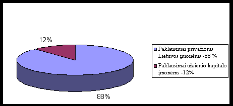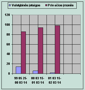 Moterims, kaip ir anksčiau, dažniausiai buvo siūloma dirbti siuvėjomis, sekretorėmis, administratorėmis, referentėmis, padavėjomis, virėjomis, pardavėjomis, buhalterėmis, kirpėjomis ir pan. Tarp privačių darbdavių, platinusių diskriminacinio pobūdžio skelbimus pateko ir 6 užsienio kapitalo ir bendros su užsieniu firmos (14 pav.).