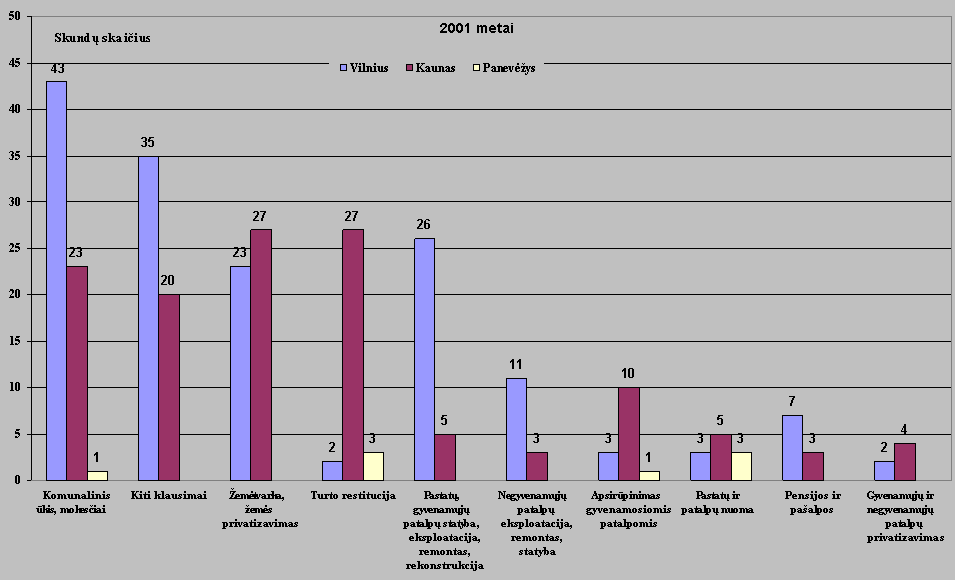 IŠTIRTŲ SKUNDŲ PROBLEMATIKA (2001-01-01 - 2001-12-31)
