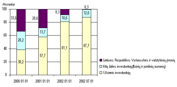 Einamosios sąskaitos deficito padidėjimą lėmė pakitusios išorės ir vidaus ekonomikos raidos tendencijos. Lėta Europos Sąjungos šalių ekonomikos raida neigiamai veikė Lietuvos prekių eksportą, kurio pusė tenka šioms šalims. Lietuvos prekių pardavimas šiam regionui praėjusį pusmetį buvo tik 8 procentais didesnis nei prieš metus. Tuo tarpu prekių importo iš ES šalių apimtys išaugo 24,5 p rocento. Ypač ryškus skirtumas buvo antrąjį šių metų ketvirtį, kai žymiai padidėjo naujų lengvųjų automobilių įvežimas. Pastarąjį procesą skatino liepos 1 d. numatyta pakeisti pridėtinės vertės mokesčio grąžinimo tvarka.Prekių pardavimas NVS šalims praėjusį pusmetį, palyginti su tuo pačiu praėjusių metų laikotarpiu, išaugo ketvirtadaliu (25,5%), iš to skaičiaus Rusijai dėl išaugusio lengvųjų automobilių reeksporto net 1,6 karto. Tuo tarpu importuotų iš NVS šalių prekių apimtys sumažėjo 13,6 procento. Lietuvos ūkio raida, palyginti su ES ir kaimyninėmis šalimis, buvo gerokai spartesnė. Pakito ir ją lemiančių veiksnių įtaka. Palyginti su praėjusiais metais, prekių eksporto įtaka sumažėjo, tačiau daug didesnės reikšmės įgijo didėjančios vidaus investicijos, skatinančios prekių importą. Tą patvirtina 1,7 karto išaugusios investicinių prekių importo apimtys. Praėjusį pusmetį teigiamas einamųjų pervedimų balansas (358,6 mln. Lt) buvo žymiai mažesnis negu prieš metus. Einamųjų neatlygintinų pervedimų sumažėjo todėl, kad gerokai padaugėjo neatlygintinų kapitalo pervedimų, t. y. išmokų (iš ES struktūrinių sureguliavimo fondų /SAPARD ir ISPA/ ir pan.), skirtų įvairiems investiciniams projektams Lietuvoje vykdyti. Kapitalo ir finansinės sąskaitų balansas, palyginti su pirmuoju 2001 m. pusmečiu, padidėjo 301,1 mln. litų. Didžiausios įtakos tam turėjo antrąjį šių metų ketvirtį padidėję tiesioginių užsienio investicijų ir kitų investicijų Lietuvoje srautai. Pirmąjį šių metų pusmetį visų užsienio investicijų Lietuvoje srautas buvo 2,8 mlrd. litų beveik 1,2 mlrd. litų didesnis negu prieš metus. Einamosios sąskaitos finansavimas užsienio kapitalo investicijomis, kurios nedidina skolos užsieniui (investicijos į akcinį kapitalą ir reinvesticijos), sudarė 65,2 procento einamosios sąskaitos deficito (2001 m. pirmąjį pusmetį 78,1 %). Nors antrąjį šių metų ketvirtį konsoliduoto valstybės biudžeto deficitas kiek padidėjo, jo įtaka ESD buvo nedidelė. Tiesioginių užsienio investicijų srautas šalyje praėjusį pusmetį buvo beveik 1,6 mlrd. litų. Palyginti su pirmuoju 2001 m. pusmečiu, jis padidėjo 515 mln. litų (1,5 k.). Šį padidėjimą lėmė sėkmingas Lietuvos žemės ūkio banko ir Lietuvos dujų privatizavimas bei Rusijos Jukos Oil Corporation investicijos į Mažeikių naftą. Pirmąjį pusmetį tiesioginėmis užsienio investicijomis už privatizuotus objektus klasifikuojamų pajamų buvo 187 mln., reinvesticijų 131,7 mln. litų. Šių metų birželio pabaigoje tiesioginės užsienio investicijos Lietuvoje siekė 12,1 mlrd. litų (3,49 mlrd. eurų, arba 3,47 mlrd. JAV dol.). Vienam šalies gyventojui minėtų investicijų vidutiniškai teko 3,5 tūkst. litų (1 007 eurai, arba 1 000 JAV dol.). Į apdirbamąją pramonę buvo investuota 29,8 procento, finansinį tarpininkavimą 19,6, didmeninę ir mažmeninę prekybą 17,7, transporto, sandėliavimo ir nuotolinių ryšių veiklas 17,3 procento visų tiesioginių užsienio investicijų. Daugiausia lėšų iki liepos 1 d. buvo investavę Danijos (16,6%), Švedijos (16,2%), JAV (10,2%), Vokietijos ir Estijos (po 9,6%) investuotojai. ES šalių investicijos sudarė 60,6 procento, kandidačių į ES 13,5 procento visų investicijų. Pirmąjį šių metų pusmetį investicijų portfelio įplaukos buvo beveik 1,4 mlrd. litų. Tą lėmė nerezidentams išplatinta Vyriausybės euroobligacijų emisija, už kurią gauta 1,25 mlrd. litų. Lietuvos tarptautinių investicijų balansas. Šių metų viduryje visas šalies finansinis užsienio turtas buvo beveik 14 mlrd. litų, o visi šalies tarptautiniai finansiniai įsipareigojimai 31,1 mlrd. litų. Per praėjusį pusmetį visas užsienio turtas padidėjo 1,5 mlrd., o tarptautiniai finansiniai įsipareigojimai 1,8 mlrd. litų. Birželio pabaigoje tiesioginės užsienio investicijos sudarė 38,8 procento, gautos užsienio paskolos 24,4, investicijų portfelis 20,6, o kitos investicijos 16,2 procento šalies tarptautinių įsipareigojimų. II. Lietuvos banko operacijos Pinigų politikos priemonės ir valiutos keitimo operacijos Pinigų politikos priemonių taikymas Fiksuoto lito kurso sąlygomis naudojamos pinigų politikos priemonės padeda Lietuvos bankui reguliuoti bankų sistemos likvidumą. Pirmąjį šių metų pusmetį taikytos pinigų politikos priemonės tai neribotas bazinės valiutos keitimas į litus ir litų į bazinę valiutą, privalomųjų atsargų reikalavimai ir Lietuvos banko paskolų galimybės. Privalomųjų atsargų reikalavimų vykdymas Privalomųjų atsargų reikalavimai komerciniams bankams taikomi siekiant palaikyti tinkamą bankų sistemos likvidumą. Komercinių bankų įsipareigojimai vienų kitiems ir Lietuvos bankui neįtraukiami į privalomųjų atsargų bazę (įsipareigojimus, kuriems skaičiuojamos privalomosios atsargos). Indėliams ir skolos vertybiniams popieriams, kurių pradinė trukmė yra ilgesnė kaip 2 m., bei visų trukmių atpirkimo sandoriams taikoma nulinė atsargų norma. Privalomosios atsargos komercinių bankų įsipareigojimams nacionaline valiuta laikomos litais korespondentinėse sąskaitose Lietuvos banke, o įsipareigojimams užsienio valiutomis fiksuota suma eurais arba JAV doleriais specialiose Lietuvos banko sąskaitose. Šių metų gegužės mėn. Lietuvos bankas pradėjo taikyti naujas Kredito įstaigų privalomųjų atsargų taisykles, kuriomis šių atsargų norma sumažinta nuo 8 iki 6