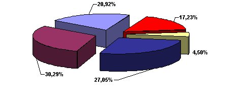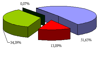 IX. FINANSAVIMAS IR LĖŠŲ PANAUDOJIMAS Telekomunikacijų įstatymu ir Vyriausybės nutarimu patvirtintais įstaigos nuostatais reglamentuota, kad Ryšių reguliavimo tarnyba finansuojama iš valstybės biudžeto ir pajamų, gautų už teikiamas paslaugas ir atliekamus darbus, kurių objektus, dydžius ir mokėjimo tvarką, suderinusi su Finansų ministerija, nustato Ryšių reguliavimo tarnybos taryba.Nuo 2001 m. Ryšių reguliavimo tarnybos vykdoma Specialioji programa - Ryšių valdymo ir kontrolės programa buvo tęsiama ir 2002 metais, finansuojant ją per valstybės biudžetą, t.y. pervedant Tarnybos gautas pajamas už suteiktas paslaugas ir atliktus darbus specialiųjų lėšų forma valstybės biudžetui ir gaunant specialiajai Ryšių valdymo ir kontrolės programai vykdyti lėšas asignavimų forma. Lietuvos Respublikos 2002 metų valstybės biudžeto ir savivaldybių biudžetų finansinių rodiklių patvirtinimo įstatymo 1 ir 3 priedėliuose Ryšių reguliavimo tarnybai 2002 metams buvo patvirtinti 4 000 tūkst. Lt asignavimai. Vadovaujantis Lietuvos Respublikos biudžeto sandaros įstatymu, Lietuvos Respublikos Vyriausybės 2001 m. gegužės 14 d. nutarimu Nr.543 Dėl Lietuvos Respublikos valstybės biudžeto ir savivaldybių biudžetų sudarymo ir vykdymo tvarkos patvirtinimo ir Finansų ministerijos 2001 m. lapkričio 29 d. raštu Nr.0203-04-0114298, 2001 metų viršplaninė ir nepanaudota įmokų į biudžetą suma sudarė 8370,7 tūkst. Lt, įstaigos biudžetinės sąskaitos nepanaudoti likučiai 168,0 tūkst.Lt, 2002 m. pirmojo ketvirčio viršplaninė ir nepanaudota įmokų į biudžetą suma 4745,0 tūkst.Lt, suderinus su Finansų ministerija, buvo įskaityta į Ryšių reguliavimo tarnybos vykdomos Ryšių valdymo ir kontrolės specialiosios programos 2002 metų finansavimą. Tokiu būdu visa paskirta Ryšių reguliavimo tarnybai asignavimų suma 2002 m. sudarė 17283,7 tūkst.Lt (4000,0+8370,7+168,0+4745,0).Gauti 2002 m. asignavimai iš biudžeto Ryšių reguliavimo tarnybos vykdomai Ryšių valdymo ir kontrolės specialiajai programai ir įstaigai išlaikyti sudarė 9 220,0 tūkst.Lt. Duomenys apie 2002 m. gautus asignavimus pateikti 1 lentelėje. 2002 metais Ryšių reguliavimo tarnybos priskaičiuotos pagal išrašytas PVM sąskaitas - faktūras pajamos už suteiktas paslaugas sudarė 30 793,9 tūkst. Lt, gautos banko palūkanos 6,7 tūkst.Lt, pagautė 3,6 tūkst.Lt. Ryšių reguliavimo tarnyba 2002 m. pervedė biudžetui 29 000,0 tūkst.Lt. RRT gautų pajamų pasiskirstymas pagal jų šaltinius pateikiamas 32 pav. 1 lentelė Ryšių reguliavimo tarnybos gauti asignavimai ir kasinės išlaidos
