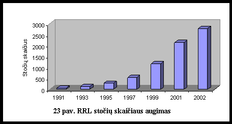 Didėjant stacionarių Žemės palydovų skaičiui bei išaugus teikiamų paslaugų kiekiui, kokybei ir sumažėjus kainoms, Lietuvoje žymiai padaugėjo vartotojų, besinaudojančių daug didesnes galimybes suteikiančiomis palydovinio ryšio paslaugomis. 2002 metais išduoti 35 leidimai naudoti palydovinio ryšio stotis.23 pav. pavaizduotas RRL stočių skaičiaus augimas per paskutinius 11 metų. 2002 metų pabaigoje buvo užregistruotos 2786 fiksuotojo radijo ryšio stotys. Palyginti su 2001 metais, šis skaičius padidėjo 644 stotimis. Didžiąja dalimi šis prieaugis susijęs su bendrojo judriojo ryšio tinklų plėtra.