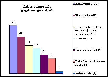 Svetimžodžių keitimas lietuviškais atitikmenimis 118,0 tūkst. Lt (darbo užmokestis 84,0 tūkst. Lt, soc. draudimo įmokos 26,0 tūkst. Lt, spaudiniai 6,6 tūkst. Lt, prekės 2,4 tūkst. Lt).