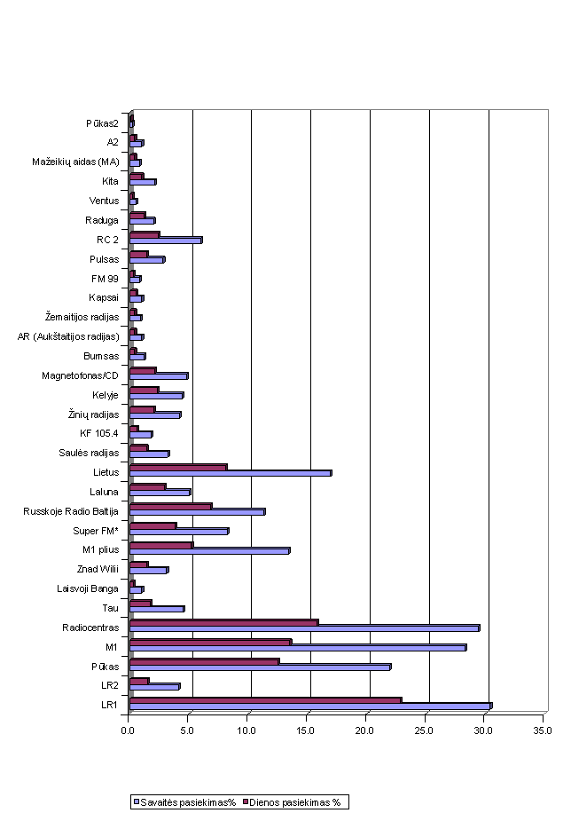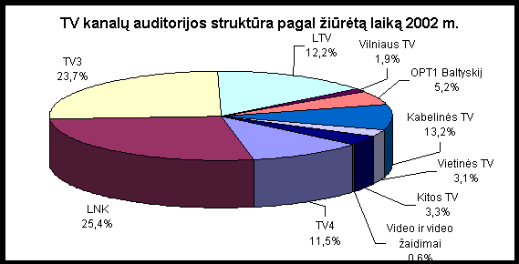 Radijo auditorijos tyrimas, 2002 metai Apklausti 12.354 12-74 metų amžiaus respondentai Televizijos kanalų auditorijos struktūra 2002 metais