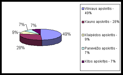 Aptariant regionus, kurių gyventojai pateikė skundus, pažymėtina, kad ir šiais metais aktyviausi yra Vilniaus miesto gyventojai. Kaip ir 2002 m., perpus mažiau aktyvūs buvo Kauno miesto gyventojai. Taigi akivaizdu, kad dažniausiai į Lygių galimybių kontrolieriaus tarnybą kreipiasi ne rajonų, miestelių, bet Lietuvos didmiesčių gyventojai. Tokį pastebimai didelį didmiesčių gyventojų aktyvumą sąlygoja Lygių galimybių kontrolieriaus tarnybos geografinė padėtis (įsikūrusi Vilniuje), aktyvesnis visuomeninis gyvenimas tuose miestuose, renginių įvairovė, kurių metu sudaromos galimybės praplėsti savo akiratį, įgyti daugiau žinių bei tiesiogiai bendrauti, diskutuoti su lektoriais, klausytojais juos dominančiomis temomis. Informacija apie Lygių galimybių kontrolieriaus tarnybos veiklą, Moterų ir vyrų lygių galimybių įstatymo nuostatas yra talpinama tarnybos puslapyje internete, tačiau ši informacija greičiausiai yra daugiau pasiekiama didžiųjų miestų gyventojams, nes būtent jie daugiau naudojasi kompiuteriais ir internetiniu ryšiu. Tarnybos darbuotojai labai dažnai apklausėjams elektroniniu paštu teikia konsultacijas, patarimus, kaip elgtis, atsako į dominančius klausimus. Toks bendravimo būdas yra patogus besikreipiantiems asmenims, nes jie greitai ir pigiu būdu gauna dominančią informaciją. Atskirai reikėtų aptarti regionus, kuriuose esančios įmonės, įstaigos ar organizacijos pažeidė Moterų ir vyrų lygių galimybių įstatymą ir dėl kurių veiksmų kontrolieriaus iniciatyva buvo pradėti tyrimai. Taigi ir šiais atvejais minėto įstatymo nuostatas labiau linkę pažeisti didžiųjų Lietuvos miestų Vilniaus, Kauno, Klaipėdos, Panevėžio- įmonių savininkai bei darbdaviai. Per ataskaitinį laikotarpį negauta skundų iš Panevėžio, Telšių, Utenos ir Marijampolės apskričių, taip pat iš kaimo gyventojų.
