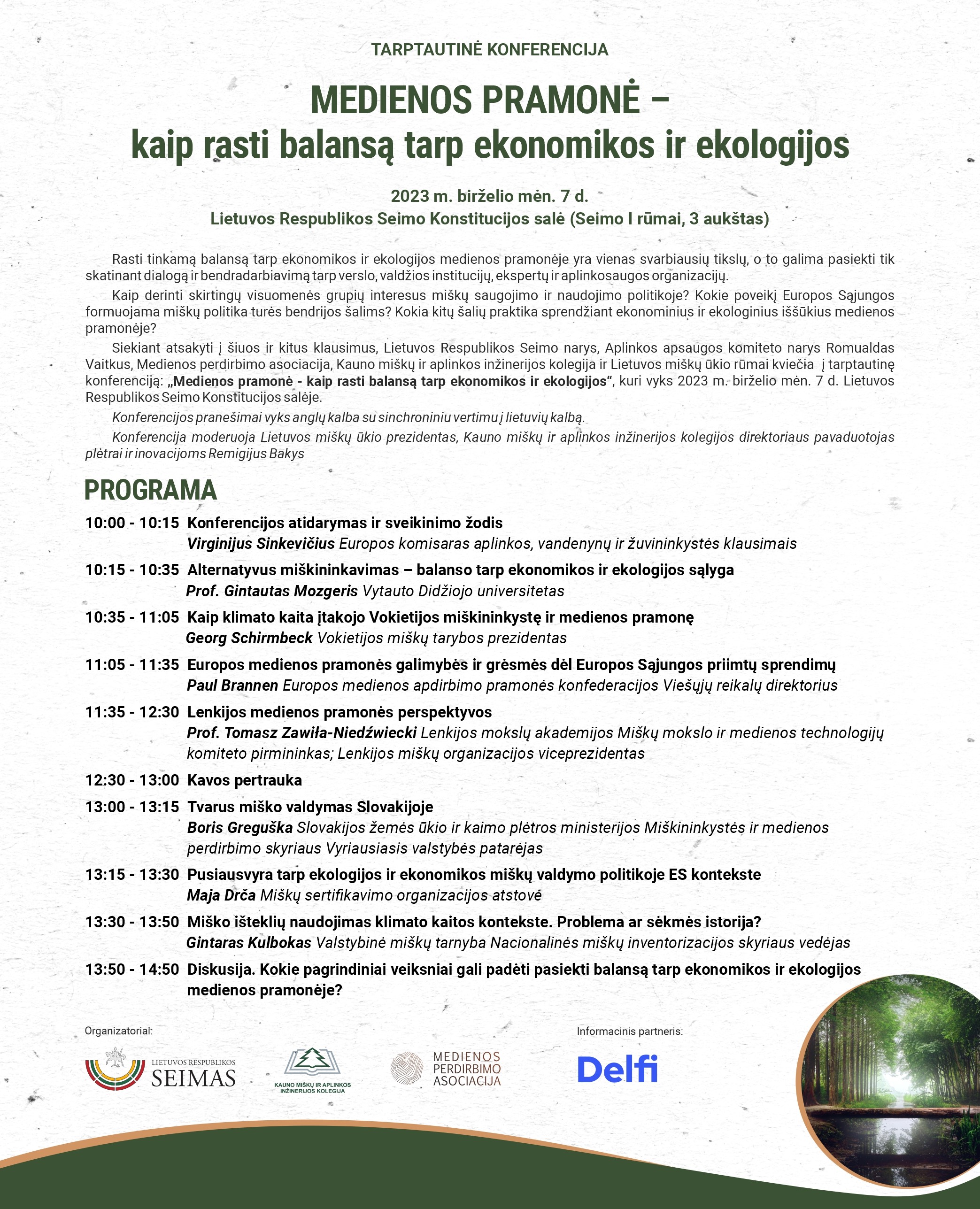 Tarptautinė konferencija „Medienos pramonė - kaip rasti balansą tarp ekonomikos ir ekologijos?“