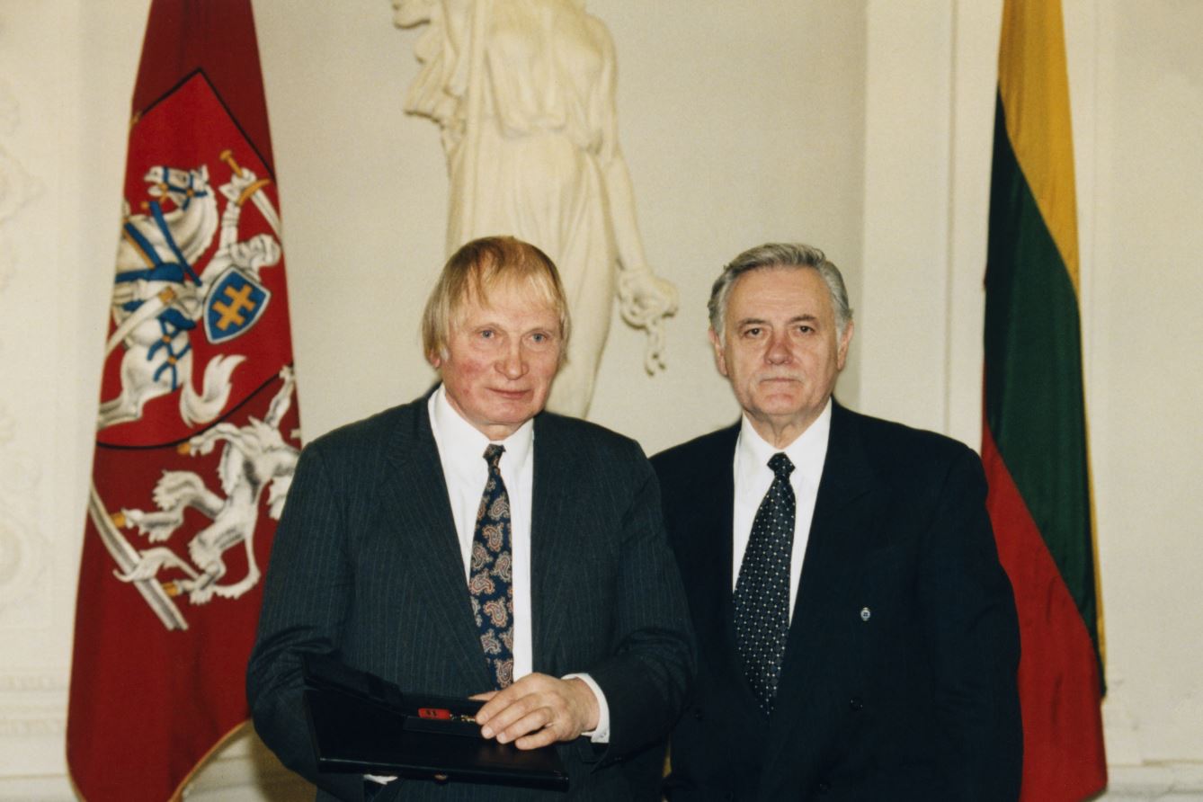Albinas Kentra ir Lietuvos Respublikos Prezidentas Valdas Adamkus valstybinių apdovanojimų įteikimo ceremonijoje 1998 m. Prezidento kanceliarijos nuotrauka.