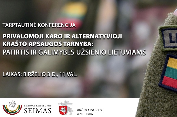 Birželio 3 d., ketvirtadienį, Seime vyks tarptautinė konferencija „Privalomoji pradinė karo ir alternatyvioji krašto apsaugos tarnyba: patirtis ir galimybės užsienio lietuviams“. Pradžia – 11 val.