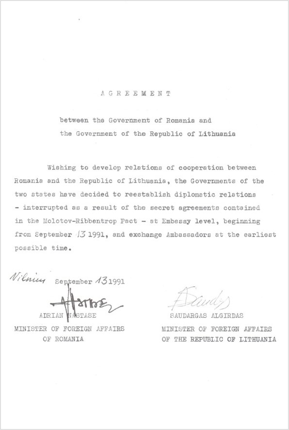 Rugsėjo 13 d., pirmadienį, 13 val. Seimo lankytojų centre (Gedimino pr. 60, Vilnius) bus paminėtas Lietuvos–Rumunijos diplomatinių santykių atkūrimo 30-metis ir atverta paroda „Rumunijos ir Lietuvos Respublikos diplomatiniai santykiai“. Parodoje pristatoma dokumentinė medžiaga pabrėžia tvirtus Rumunijos ir Lietuvos diplomatinius santykius tiek tarpukariu, tiek po 1990 m.