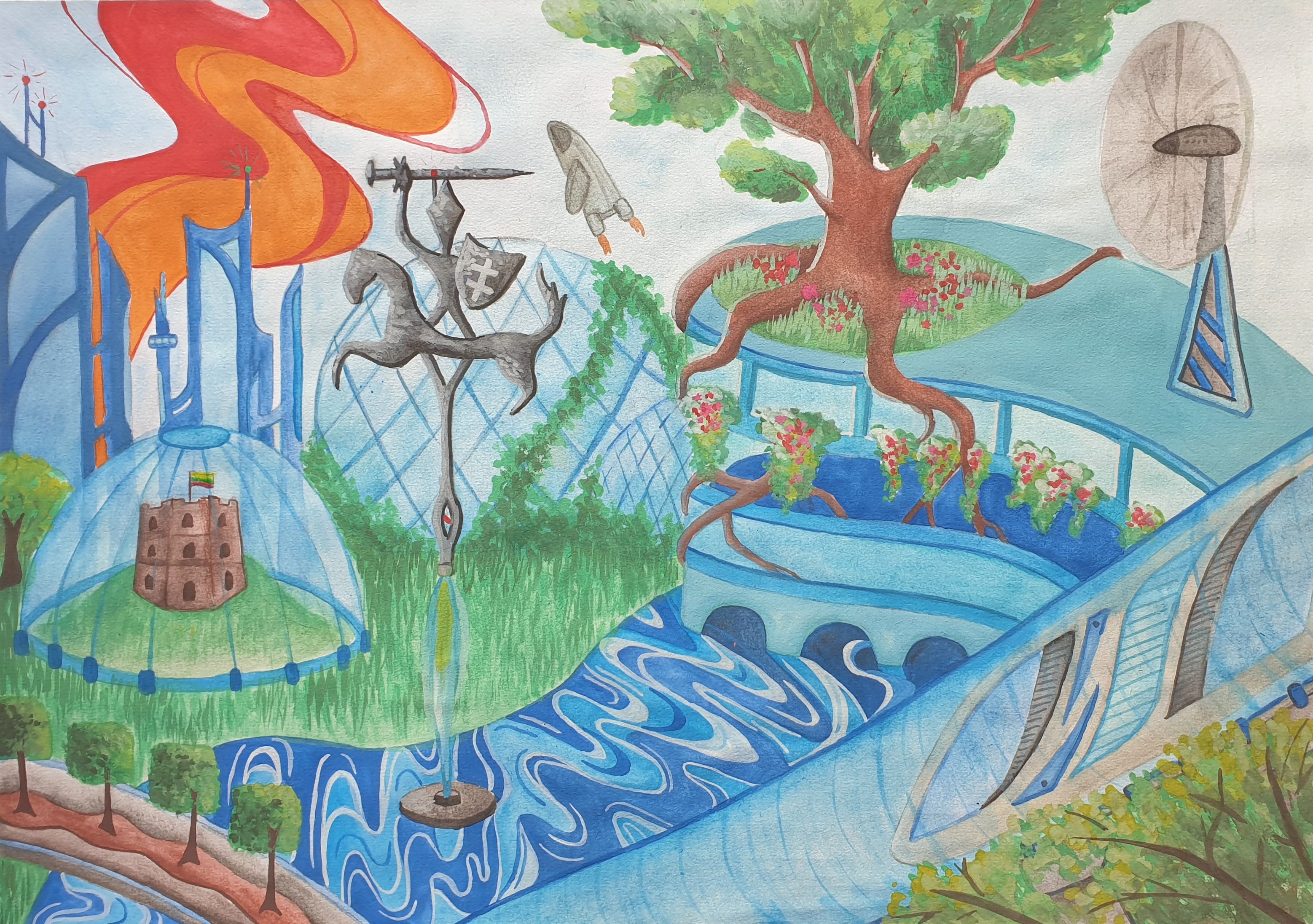 Nacionalinio mokinių piešinių konkurso „Ateities miestai“ geriausių darbų paroda (II RŪMAI, prie kavinės)