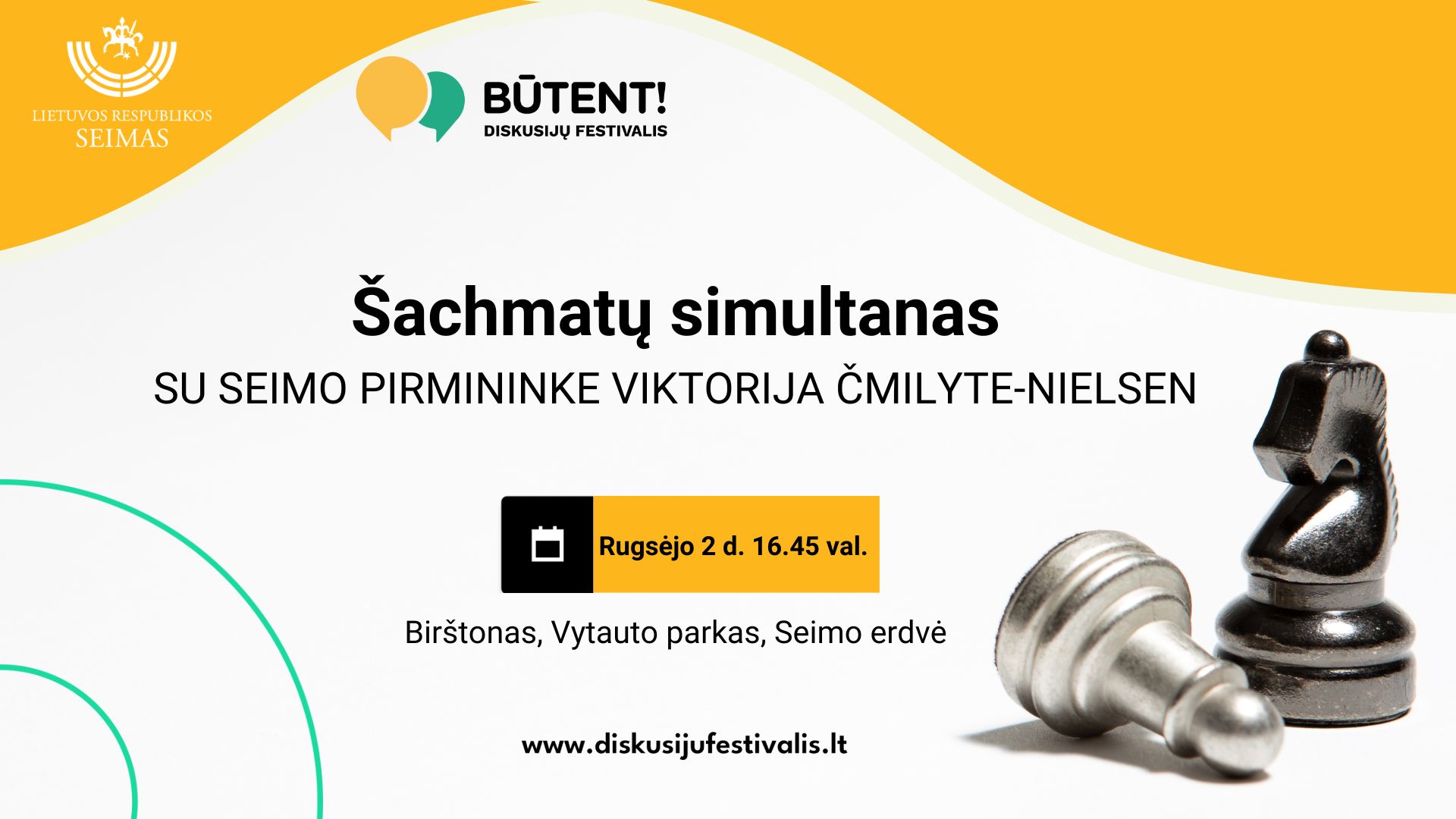 Penktadienį 16.45 val. šachmatų mėgėjai turės neeilinę galimybę sužaisti simultaną su geriausia Lietuvos šachmatininke Seimo Pirmininke V. Čmilyte-Nielsen. Registruotis į šį žaidimą gali visi norintys.