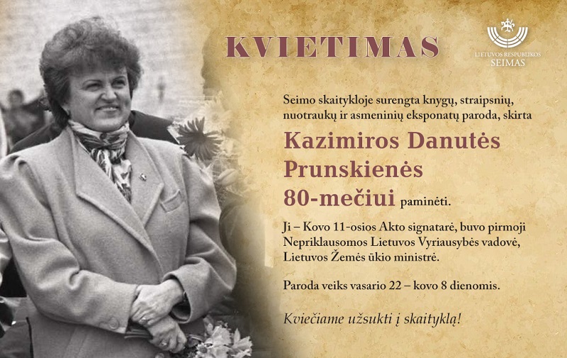 Paroda „Kazimira Danutė Prunskienė – Kovo 11-osios Akto signatarė, Pirmosios vyriausybės vadovė, žemės ūkio ministrė – pasitinka savo 80-metį“ (Seimo skaitykla)