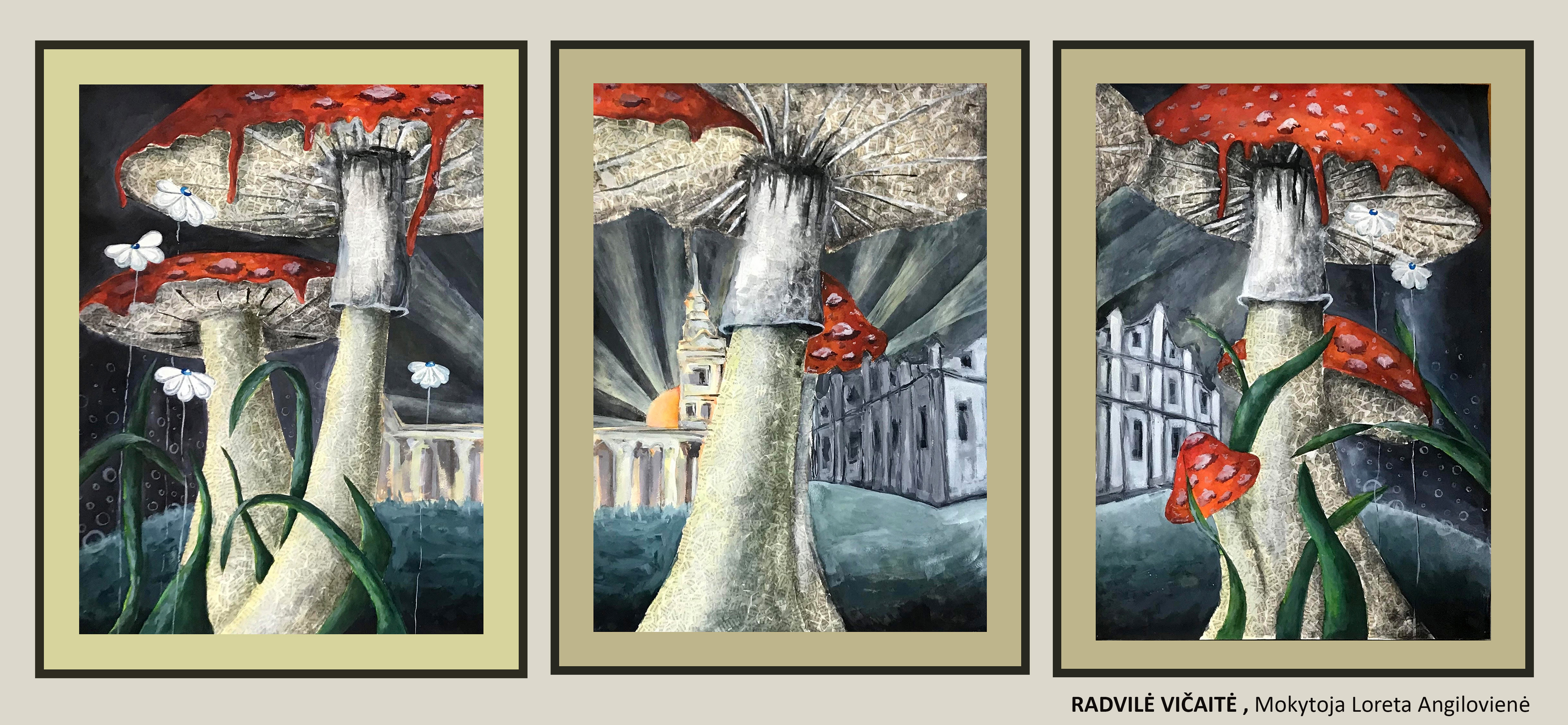 Triptikus moksleiviai atliko įvairiomis, mokslo metų eigoje išmoktomis technikomis: grafikos (lino raižiniai, monotipijos), tapybos (guašas, akrilas, akvarelė, tušas), mišriomis technikomis. Atlikdami savo baigiamąjį darbą vaizduodami Joniškį vaikai kelia socialines, globalines, ekologines ir psichologines problemas. Moksleiviai įkvėpimo sėmėsi iš įvairių Lietuvos ir užsienio šalių dailininkų. Analizavo ir savo darbams pritaikė įvairius meno stilius, sroves: realizmo, siurrealizmo, kubizmo, modernizmo stilių. Absolventų amžius 14 – 16 metų. Moksleivius ruošė dailės skyriaus mokytojos: Vladislava Ancevičienė, Loreta Angilovienė, Orinta Orlickienė, Vida Žukienė.