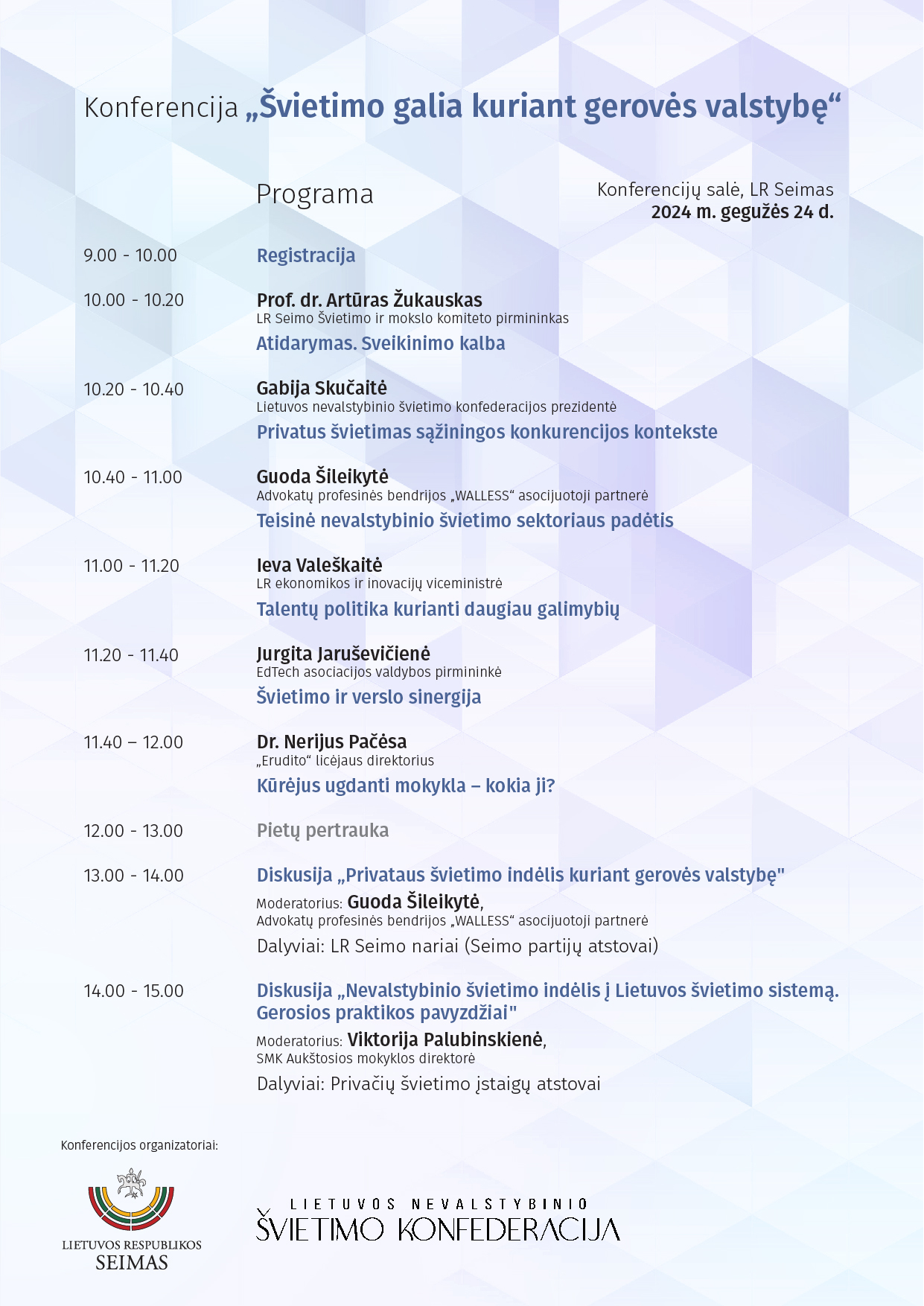 Konferenciją organizuoja Lietuvos nevalstybinio švietimo konfederacija kartu su Seimo švietimo ir mokslo komitetu.