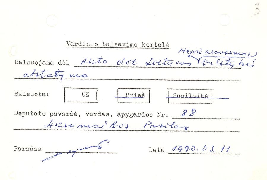 Lietuvos Respublikos Seimo archyvas. F. 2, ap. 1, b. 17, l. 3