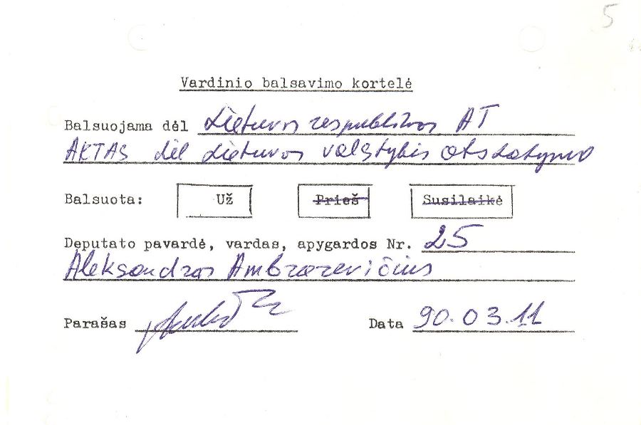 Lietuvos Respublikos Seimo archyvas. F. 2, ap. 1, b. 17, l. 5