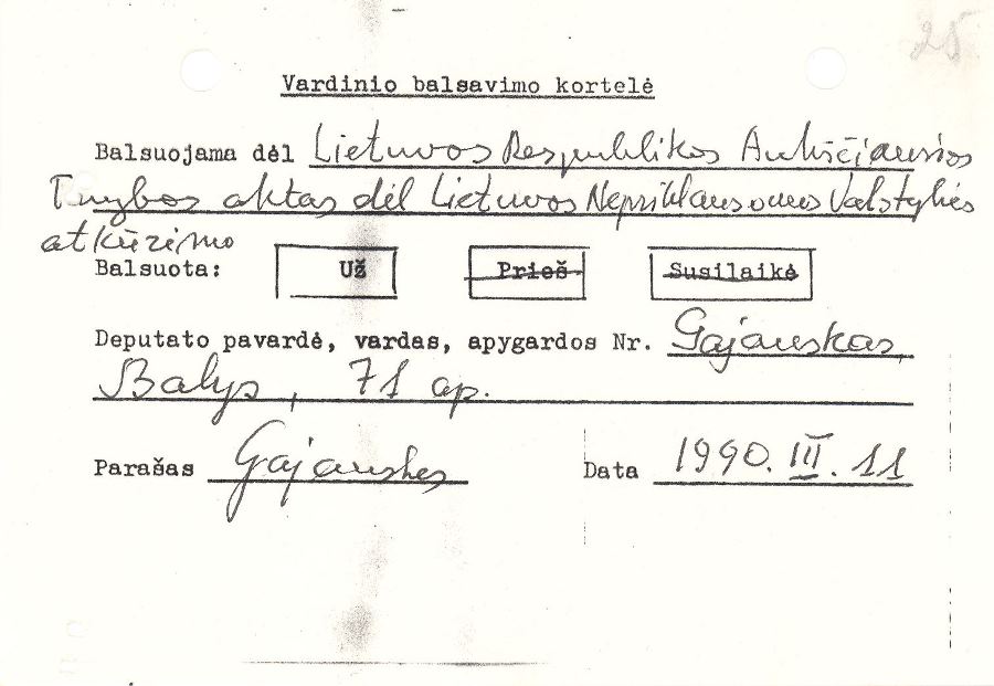 Lietuvos Respublikos Seimo archyvas. F. 2, ap. 1, b. 17, l. 25