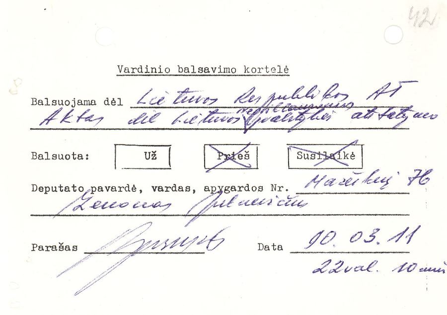 Lietuvos Respublikos Seimo archyvas. F. 2, ap. 1, b. 17, l. 42