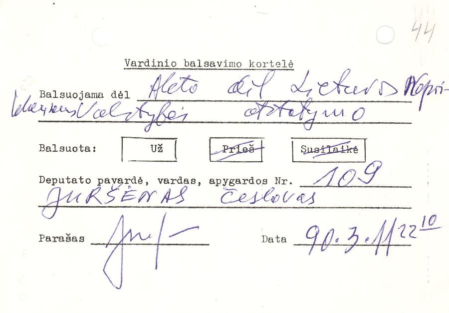 Lietuvos Respublikos Seimo archyvas. F. 2, ap. 1, b. 17, l. 44