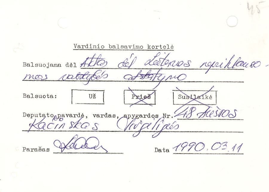 Lietuvos Respublikos Seimo archyvas. F. 2, ap. 1, b. 17, l. 45