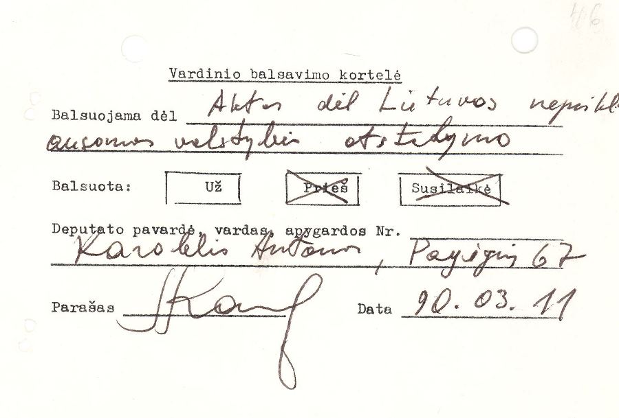 Lietuvos Respublikos Seimo archyvas. F. 2, ap. 1, b. 17, l. 46