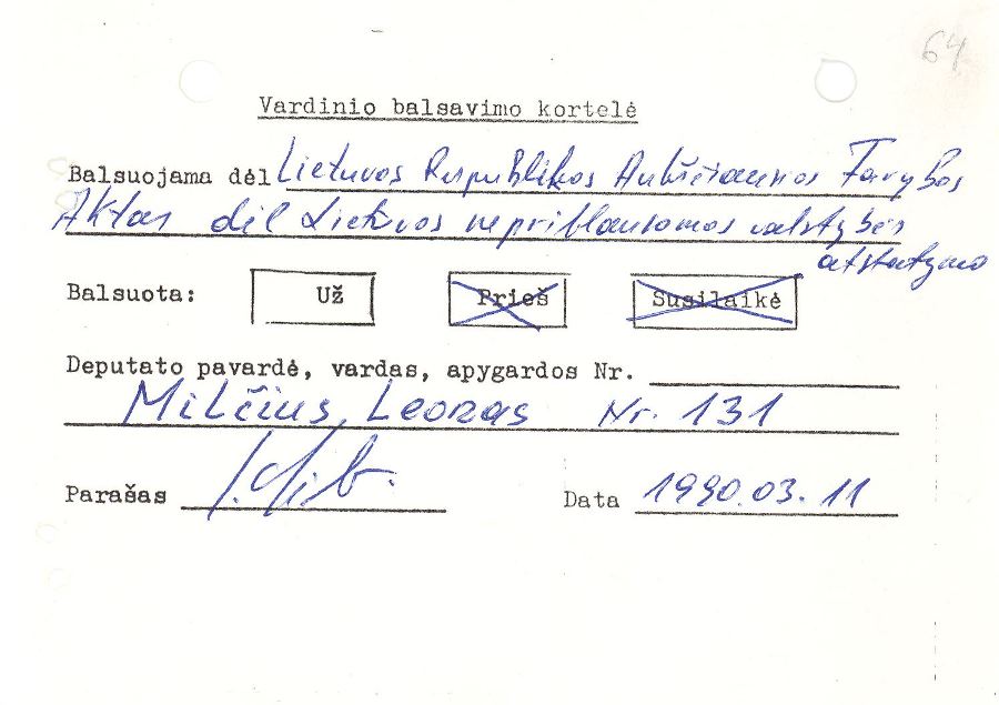 Lietuvos Respublikos Seimo archyvas. F. 2, ap. 1, b. 17, l. 64