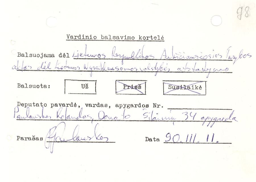 Lietuvos Respublikos Seimo archyvas. F. 2, ap. 1, b. 17, l. 78