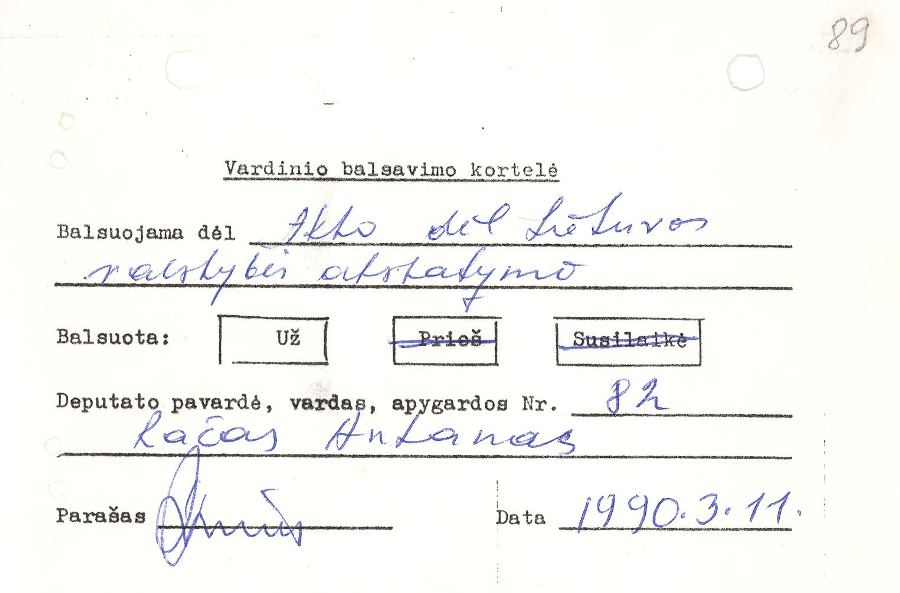 Lietuvos Respublikos Seimo archyvas. F. 2, ap. 1, b. 17, l. 89