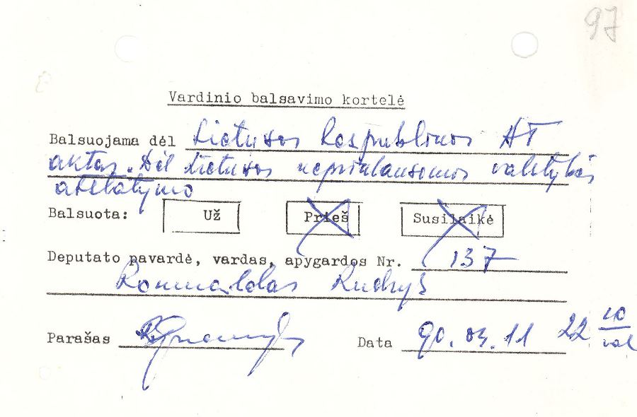 Lietuvos Respublikos Seimo archyvas. F. 2, ap. 1, b. 17, l. 97