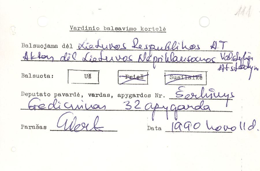 Lietuvos Respublikos Seimo archyvas. F. 2, ap. 1, b. 17, l. 111