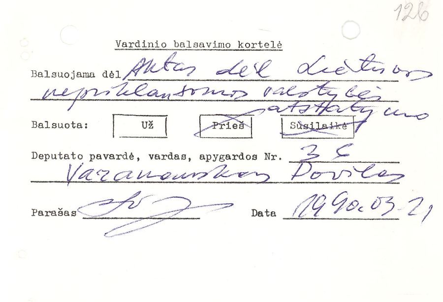 Lietuvos Respublikos Seimo archyvas. F. 2, ap. 1, b. 17, l. 126
