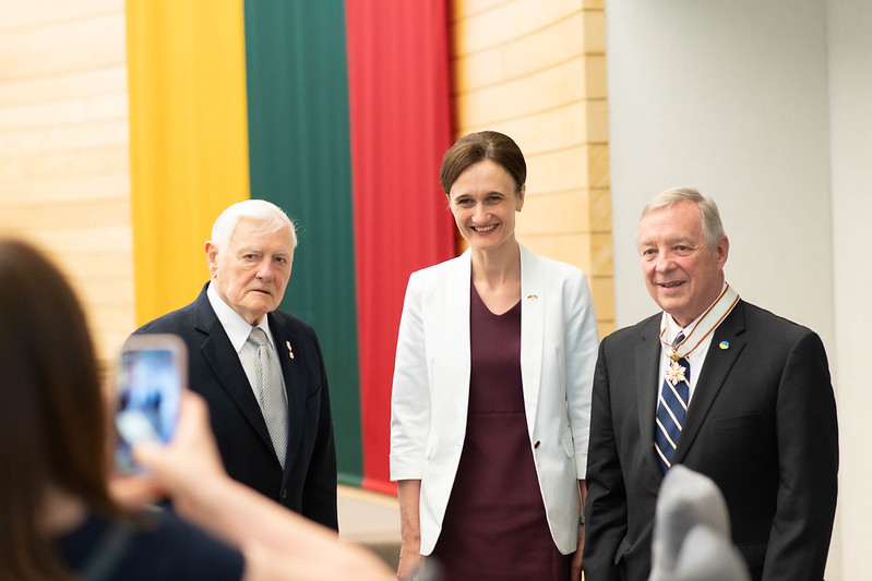 Pirmadienį JAV senatoriui Ričardui Džozefui Durbinui (Richard Joseph Durbin), vienam garsiausių ir įtakingiausių Lietuvos nepriklausomybės advokatų pasaulyje, Seimo Pirmininkė Viktorija Čmilytė-Nielsen įteikė Seimo apdovanojimą – Aleksandro Stulginskio žvaigždę.