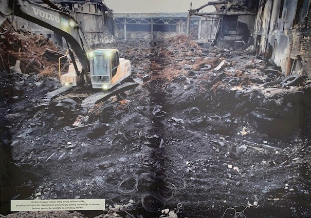 Parodos nuotraukose atsispindi viena didžiausių pastarojo metų ekologinių nelaimių Lietuvoje – 2019 m. spalio 16 d. Alytaus padangų perdirbimo gamykloje „Ekologistika“ kilęs gaisras, kuris truko net 10 dienų. Pavojingų atliekų tvarkymo įmonei „Toksika“ buvo pavesta sutvarkyti gaisravietę ir utilizuoti kenksmingas medžiagas. Kokį vaizdą išvydo atvykę „Toksikos“ specialistai, kaip vyko gaisravietės tvarkymo darbai ir kokie kiekiai po gaisro susidariusių pavojingųjų atliekų buvo išvežti – apie visa tai iš arti pasakoja parodos nuotraukos.